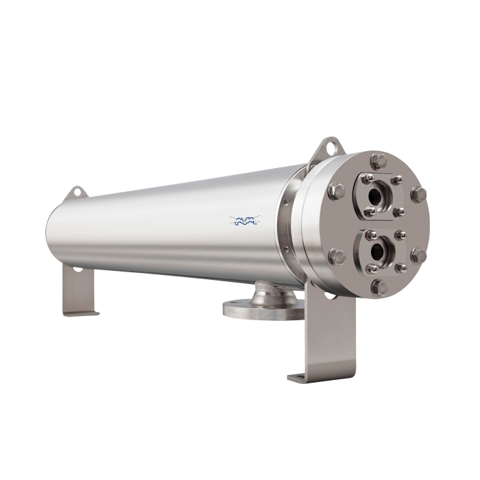 Ideal for point-of-use cooling, this compact heat exchanger features a unique tube-in-tube design, no internal welds, and full drainability on the product side. Designed to remain sanitized even when not in use (standby mode), it also promotes high shear force, high turbulence and optimal heat transfer efficiency. Its low hold-up volume and quick heat exchanger response mean cold water is available within seconds, minimizing water waste.